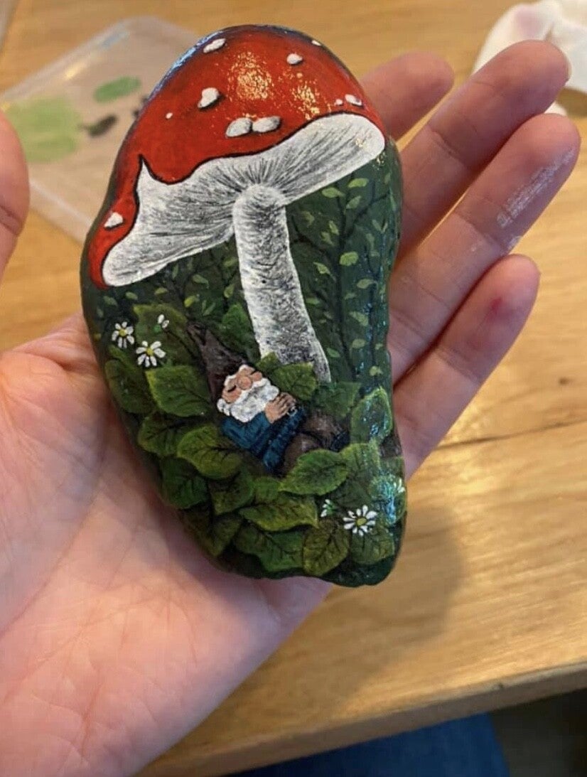 Mijn dochter Marcia, vindt het heerlijk om met allerlei materialen te werken; met klei, verven op steen, etc.